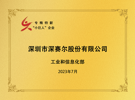 深賽爾榮膺國(guó)家專精特新“小巨人”稱號(hào)